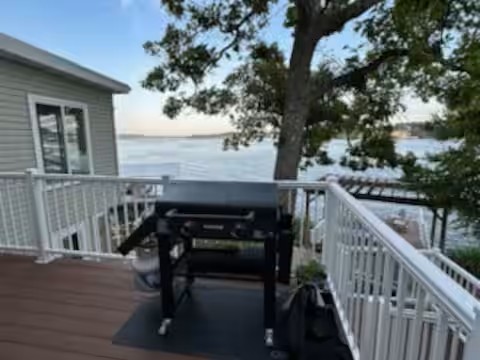 Your family will LOVE this 5 bdrm, 4 bath, 3000 Sq Ft home on the lake. Property easily accommodates up to 4 couples plus children, sleeping 12-16 guests in standard beds, and a few more with air mattresses. We offer a game room, large concrete 2-slip dock with swim ladders, kayak, paddle boat and bar/refreshment area. Dream yard with firepit, patio, and a martini deck over the water. Sunrise to sunset views.